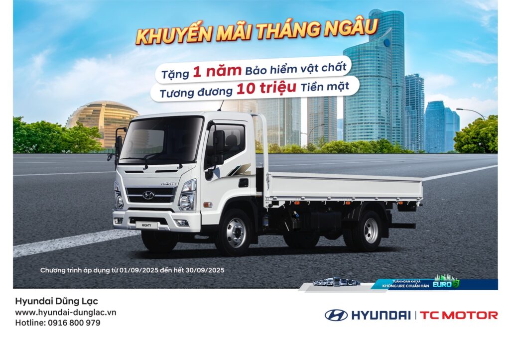 Từ 01/09 – 30/09/2025, Hyundai Dũng Lạc triển khai chương trình khuyến mãi: Mua xe Mighty N500 Series – Giải pháp vận tải chuyên nghiệp