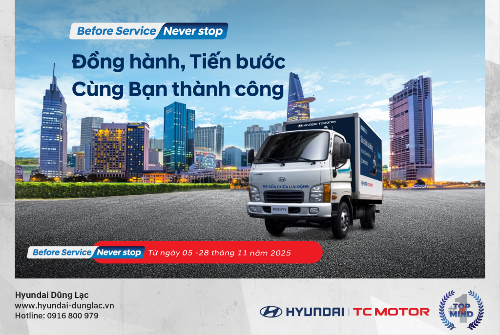 HYUNDAI DŨNG LẠC TRIỂN KHAI CHƯƠNG TRÌNH “BEFORE SERVICE NEVER STOP – ĐỒNG HÀNH, TIẾN BƯỚC CÙNG BẠN THÀNH CÔNG” TẠI NGHỆ AN VÀ HÀ TĨNH TỪ 05/11 – 30/11/2025