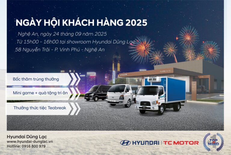 Hyundai Dũng Lạc đã tổ chức thành công sự kiện “Lái thử và trải nghiệm” các dòng xe tải N250SL, 110SP và EX8L tại TT Cẩm Xuyên – Hà Tĩnh