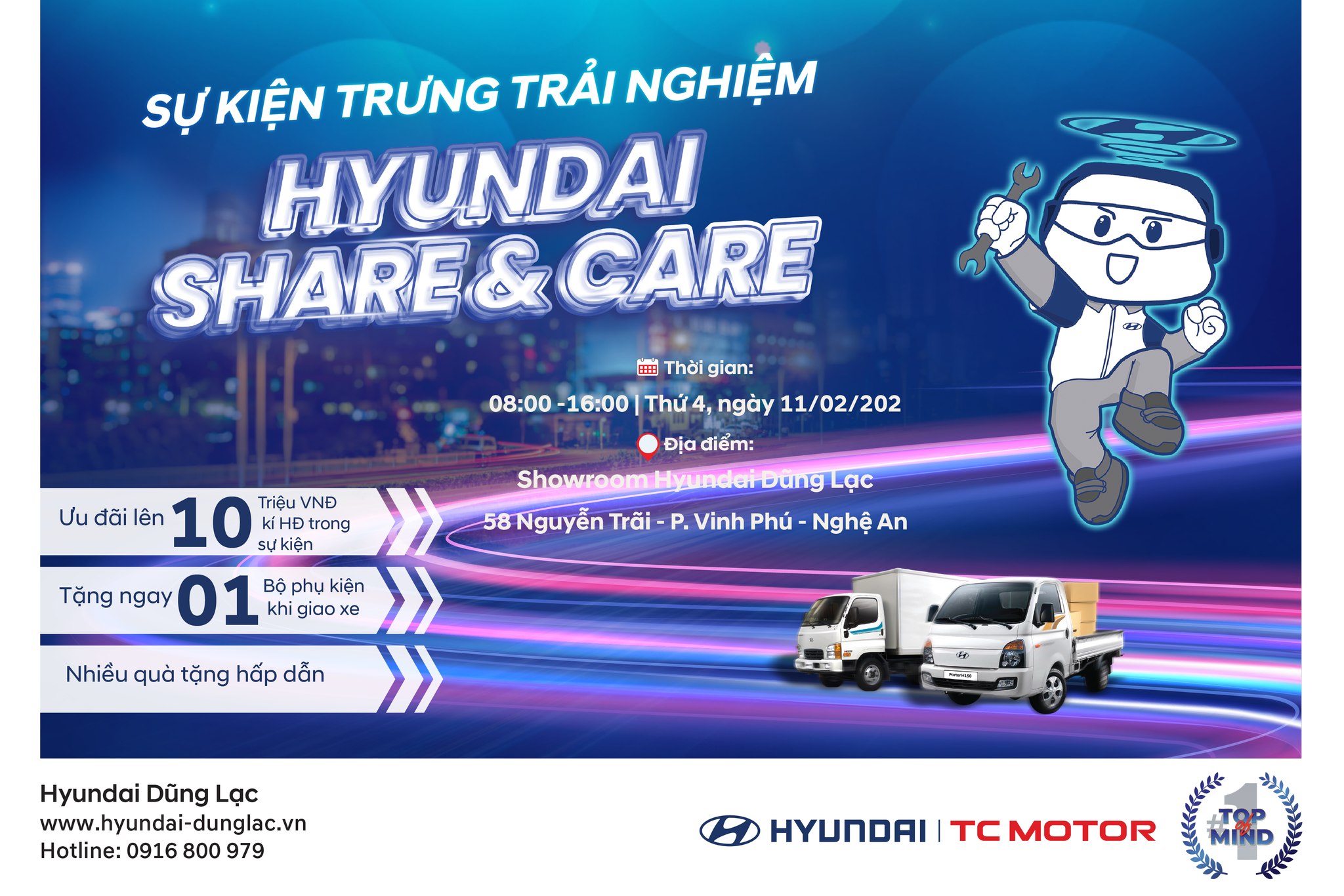 ❤️Trân trọng kính mời quý khách hàng tham gia chương trình “𝐓𝐫𝐮̛𝐧𝐠 𝐛𝐚̀𝐲 𝐯𝐚̀ 𝐥𝐚́𝐢 𝐭𝐡𝐮̛̉ 𝐝𝐨̀𝐧𝐠 𝐱𝐞 𝐭𝐚̉𝐢 𝐇𝐲𝐮𝐧𝐝𝐚𝐢” từ 08h00 – 16h00 ngày 11/02/2026 tại 𝐒𝐇𝐎𝐖𝐑𝐎𝐎𝐌 𝐇𝐘𝐔𝐍𝐃𝐀𝐈 𝐃𝐔̃𝐍𝐆 𝐋𝐀̣𝐂 – 58 NGUYỄN TRÃI, P. VINH PHÚ, NGHỆ AN và tận hưởng vô vàn quà tặng cùng khuyến mãi “𝐒𝐢𝐞̂𝐮 𝐇𝐨𝐭” chỉ có duy nhất trong ngày diễn ra sự kiện: